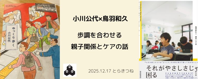 子育てや教育に関心のある方も、家族間や人間関係で何かこわばりを感じている方も、鳥羽さんの本が好きな方も、ぜひぜひたくさんのご参加をお待ちしています☺︎