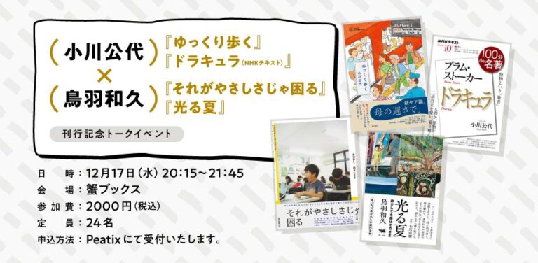 業界最注目の川柳人・暮田真名さんによる初のエッセイ集にして極私的な回復記『死んでいるのに、おしゃべりしている!』(柏書房)の刊行を記念して、暮田さんと、教育者・作家の鳥羽和久さんとのトークイベントを、12月18日にtwililightで開催します。