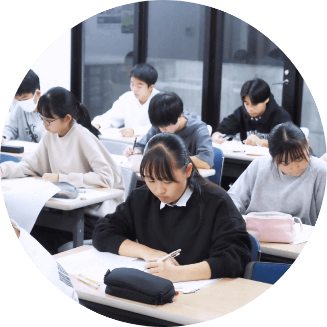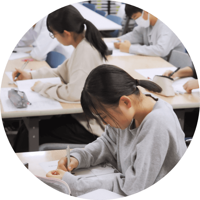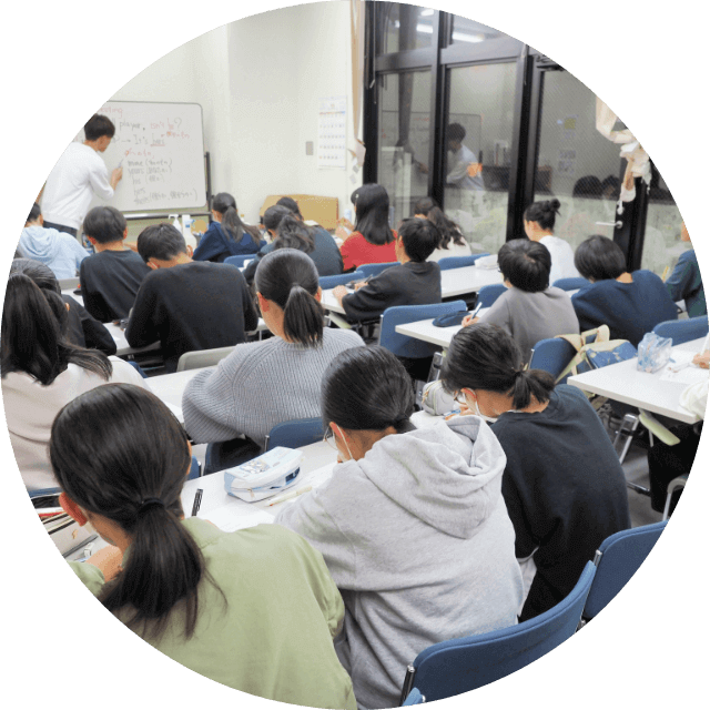 中学部には、約100名の中学生が常時在籍し、日々良きライバルたちと切磋琢磨しながら学習を進めています。特進Sクラス、特進クラス、国語塾、ライトコースなどのオプションも充実。