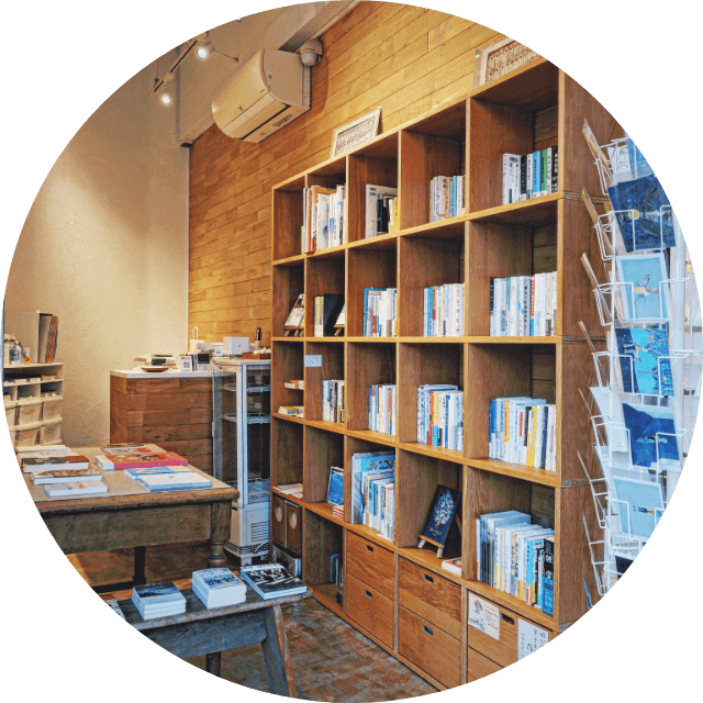 とらきつねは、唐人町寺子屋1階(黒門交差点前・大濠公園すぐそば)にある書店&イベントスペースです。また、その奥には無垢の木が香る自習室、兼イベントスペースがあり、作家や写真家、シンガーなどを招いたトークイベントやコンサートも開催されています。